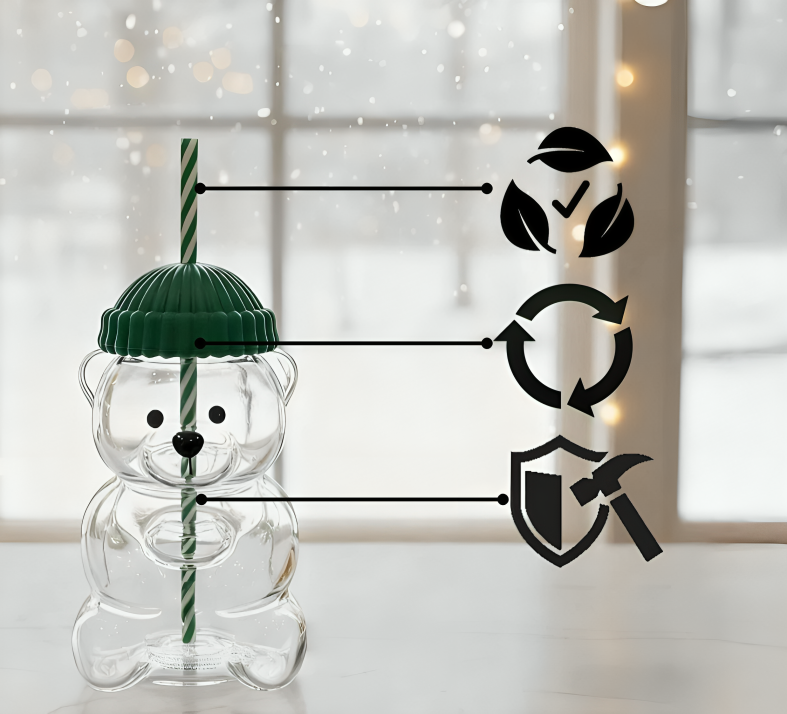 Ayıcık tasarımlı cam kupamız, hem şık hem de kullanışlı — özel günlerde mükemmel bir hediyye.